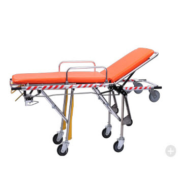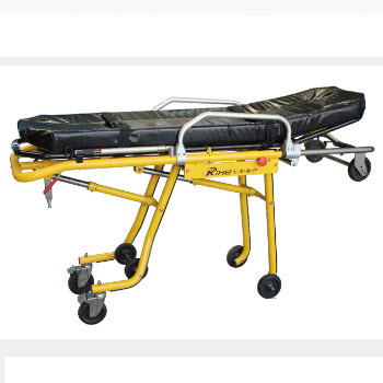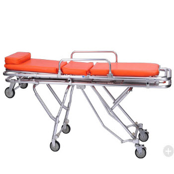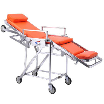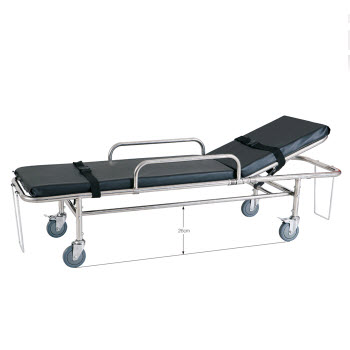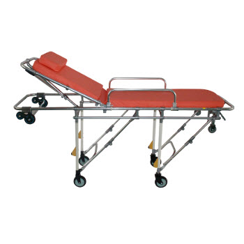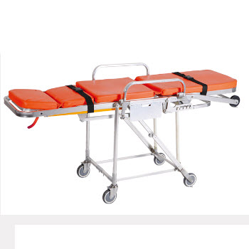 RHY-AS105救護車擔架產品特點:1.本擔架車床墊采用防水海綿制成,靠背角度可調節,使傷病員躺臥舒適。 2.本擔架車采用低車架結構,既可著地移動,又可抬起行走。3.本擔架車前后二頭設有拉環,便于運...